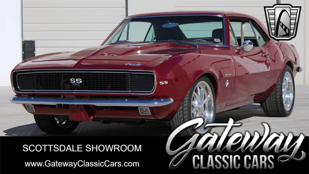 Introducing a stunning 1967 Chevrolet Camaro, a classic embodiment of American muscle and style, in a striking Cinnamon Ruby Pearl red exterior. This iconic vehicle captures the essence of the golden era of automotive design, offering a blend of vintage charm and modern enhancements that make it a true standout on the road.